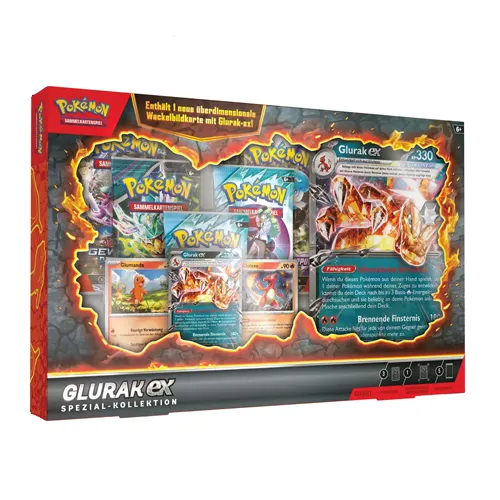 Erlebe das Feuer von Glurak EX in einer exklusiven Spezial-Kollektion! Diese Sammlung enthält starke Karten und exklusive Extras, die jeden Pokémon-Fan begeistern und Sammlerherzen höher schlagen lassen.